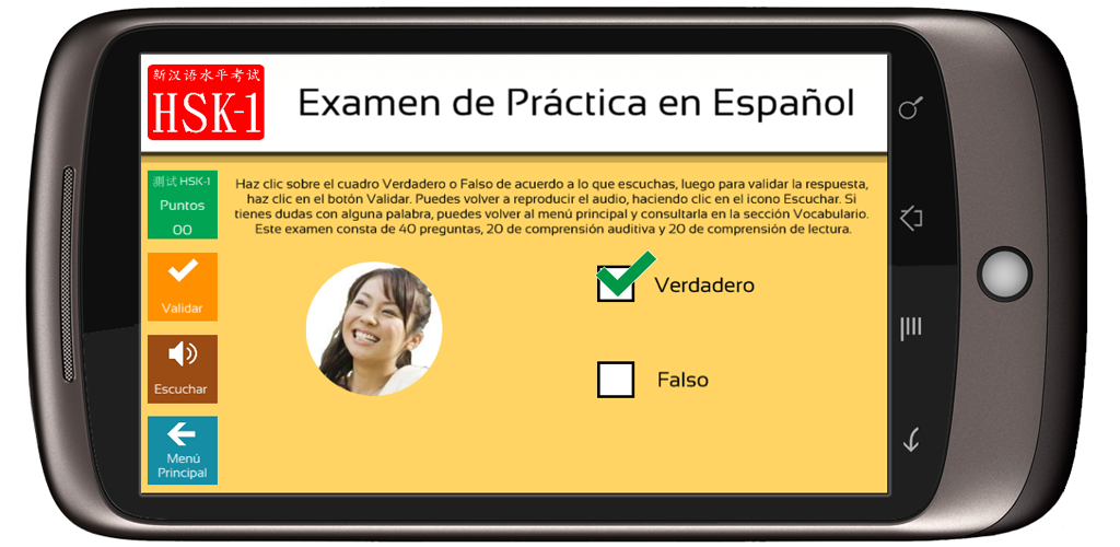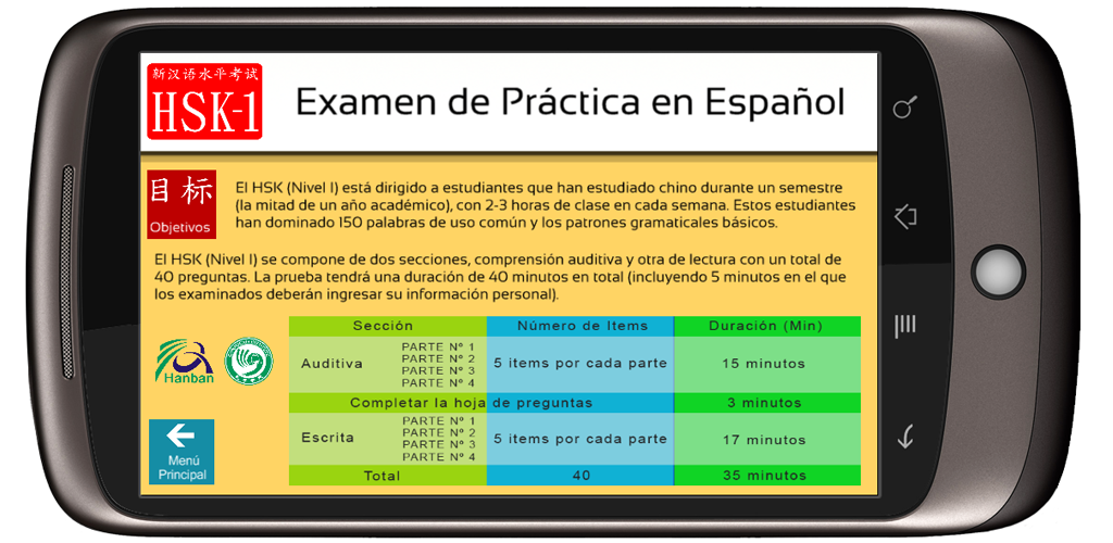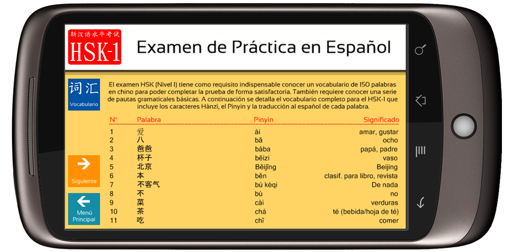 Esta aplicación Examen Práctico HSK-1 en Español te permitirá prepararte para el examen oficial de chino mandarín HSK 1 directamente desde tu móvil o tablet.
